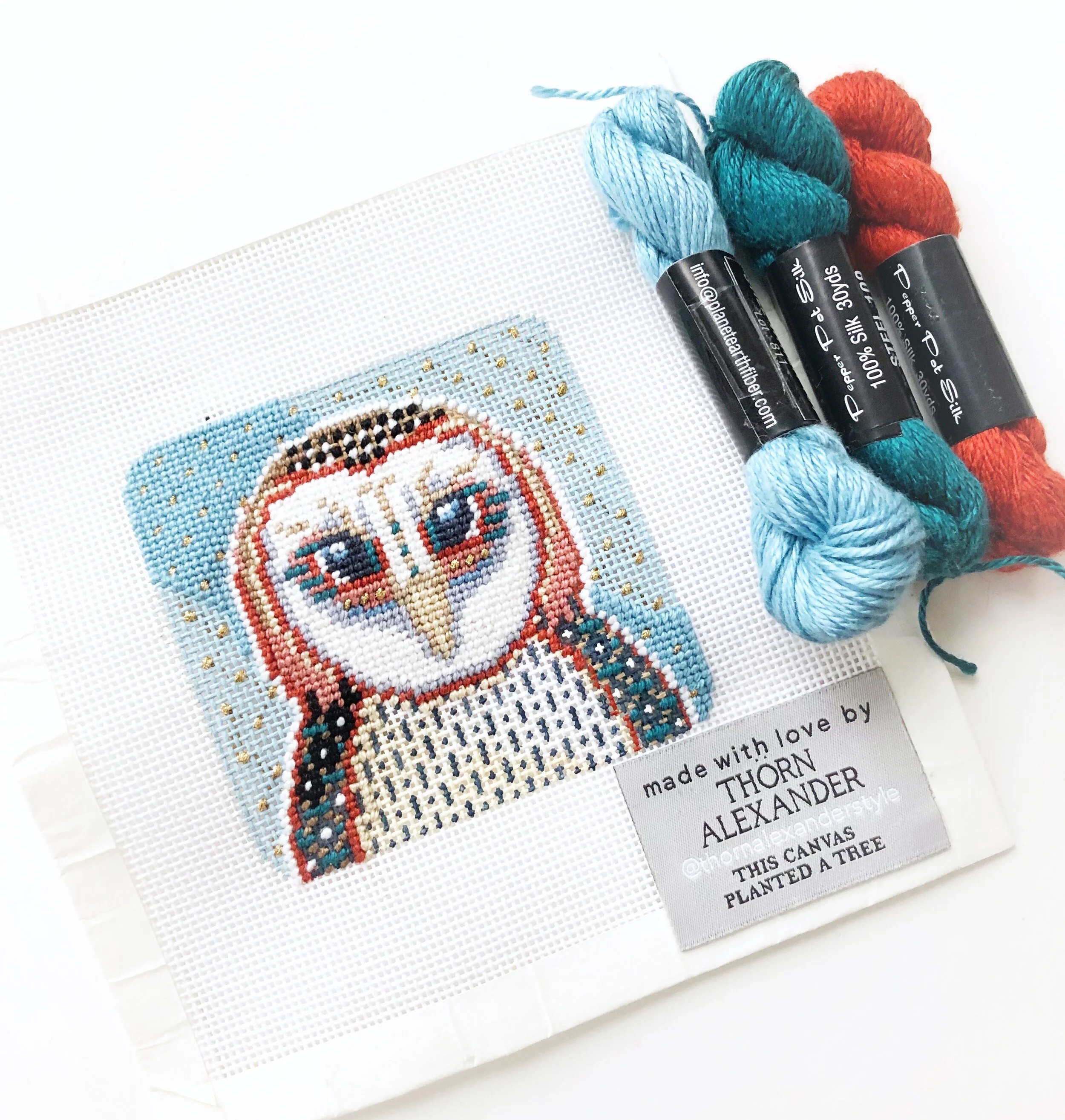 A finished stitch: This canvas was a perfect project to have with me for little moments on the go, waiting at the doctors’ office or simply watching a movie at home. 13 mesh is a really nice size for unwinding and relaxing. The first 1/4th of the canvas was stitched by my friend Cecilia back when I lived in Cambridge. I found it while repacking to move again next week! We weren’t able to bring much with us when we moved, so I was very happy to find unstitched projects in my belongings.