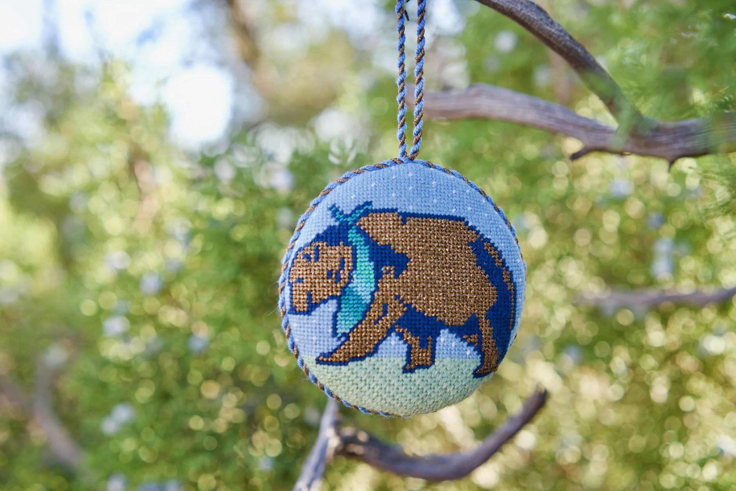 For my personal project, I chose to use Fyre Werks white for the stars and a variegated turquoise silk I found at Osterville Needlepoint. The name of the brand and color escapes me, but I highly recommend scouring your local shop for fun silks, to stitch as painted or look in your stash for a fun, colorful twist: